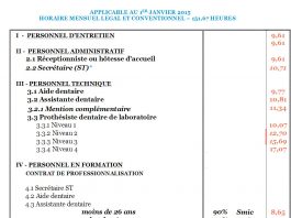Grille taux minimaux des personnels des cabinets dentaires